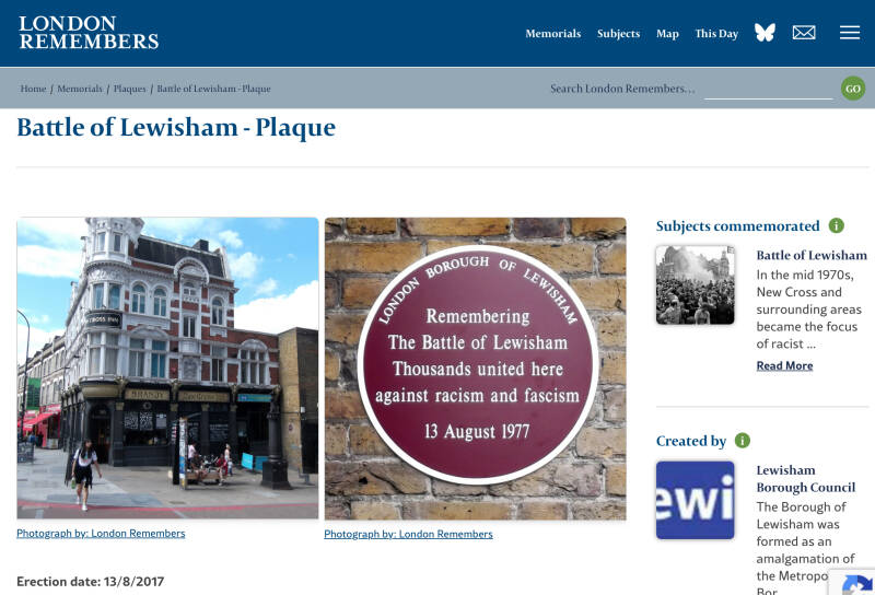 MURAL and PLAQUE: “The Battle of Lewisham”