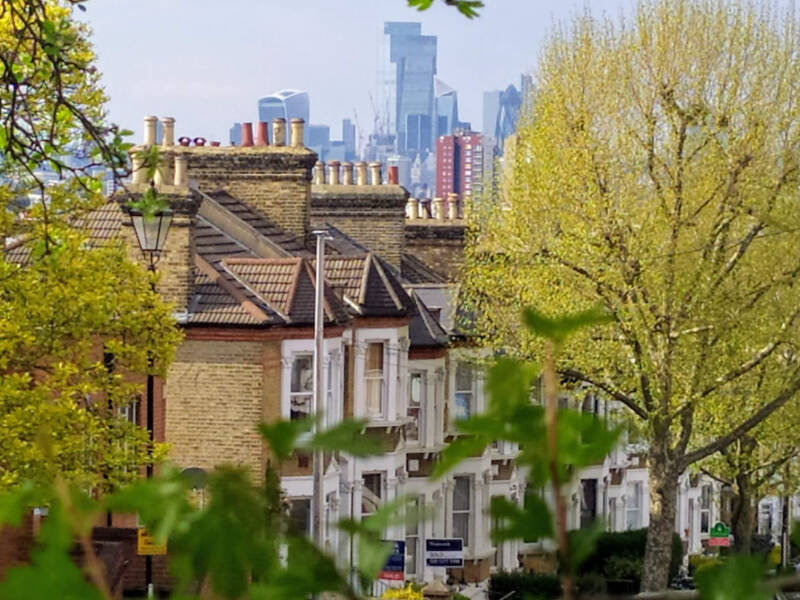 The road was developed from 1878, and consists of short terraces, on the west side with fanciful capitals in the doorways and on the east side retaining Italianate features. At the beginning on the west side, note Crossway Court, three terraced blocks of flats of 1968, in a pleasing plain modernist style with nice balconies.
