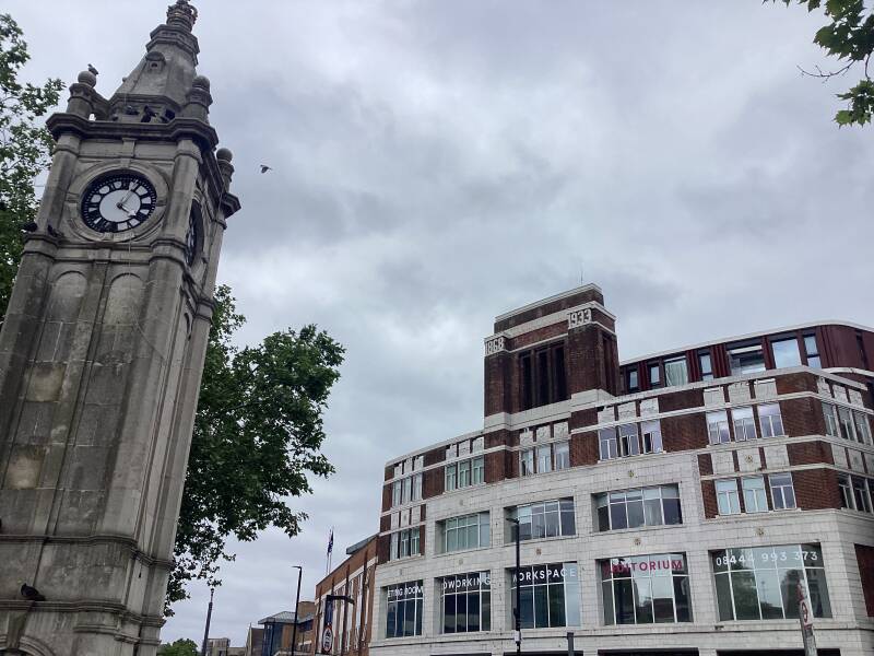 A reply : “As you'll see, the Tower has the dates 1868 and 1933, thus it celebrates 65 years from the year the Royal Arsenal Co-operative Society was established by 20 workers from the Royal Arsenal at Woolwich. It was the flagship building for Lewisham at a time when "the Co-op" fulfilled many people's shopping needs. The RACS had similar "flagship" buildings in Peckham and at their headquarters in Woolwich. By the way, there is no "national Co-operative society" as many towns in the provinces still have their own independent productive, consumer or federal societies, e.g Heart of England Co-operative Society, Chelmsford Star Co-operative Society, etc.”